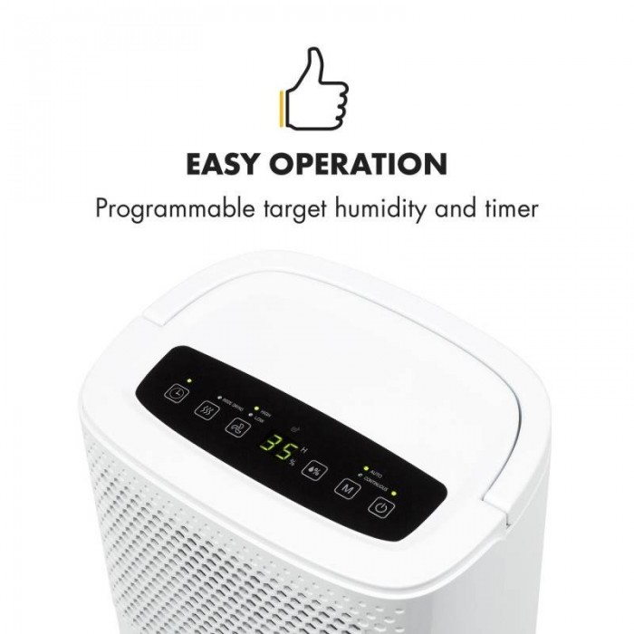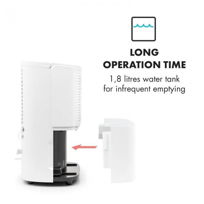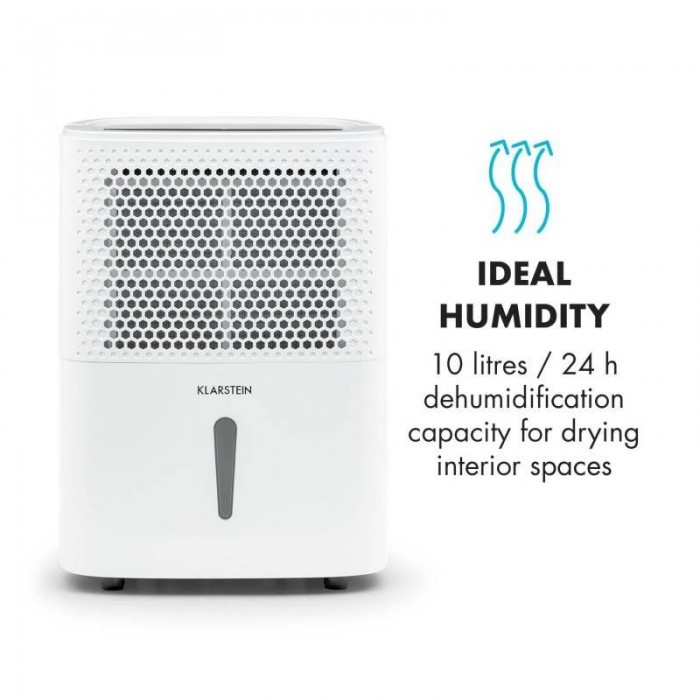 The Klarstein DRYFY 10 dehumidifier, imported from Germany, reliably fights excess humidity, fungus and dampness. The device is perfect for drying interiors after construction and renovation work or for regulating humidity in the kitchen, bathroom or bedroom. Also, the power of the dehumidifier allows it to be used effectively in warehouses, garages and other wet areas. A special feature of the device is the ability to choose the method of water drainage. The kit includes a drain hose through which water will constantly flow to the right place. Also, the dehumidifier is equipped with a standard reservoir for collecting water, which you will need to empty yourself every few hours.