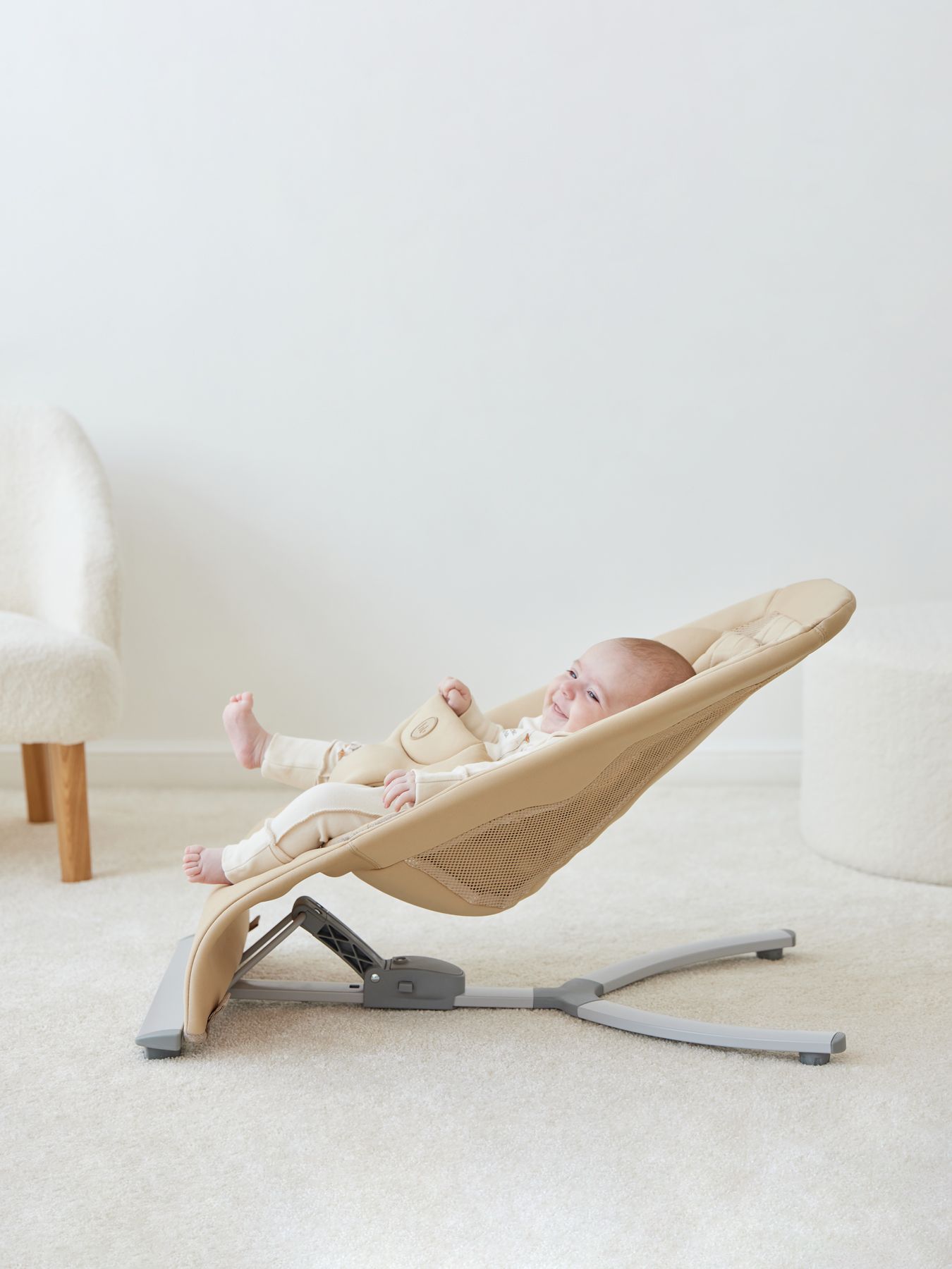 A baby lounger will help mothers do the necessary things and always be close to the newborn. Take a break while your little one explores the world outside the crib while rocking in a cozy seat. Be sure that the baby is in the anatomically correct position. The stable design is equipped with a soft leg divider and reliable fastex straps for safety. The ergonomic chair has 3 tilt options, which allows you to take into account the daily routine and mood of the baby. The frame is made of lightweight and durable aluminum, making the chaise longue easy to carry around the house. The device is compact when folded: just what you need for storage and travel. It unfolds with one hand while you hold the baby in the other: just raise the backrest. A pleasant soft mattress made of delicate material will give your baby only pleasant sensations and keep him in a good mood. The fabric can be quickly washed by hand. Design in accordance with modern trends will fit perfectly into the interior. Attention! Dear customers, when using the product, always follow the operating instructions. Before use, make sure that the mechanism is locked into place with a distinct click. No click means the mount is not locked.