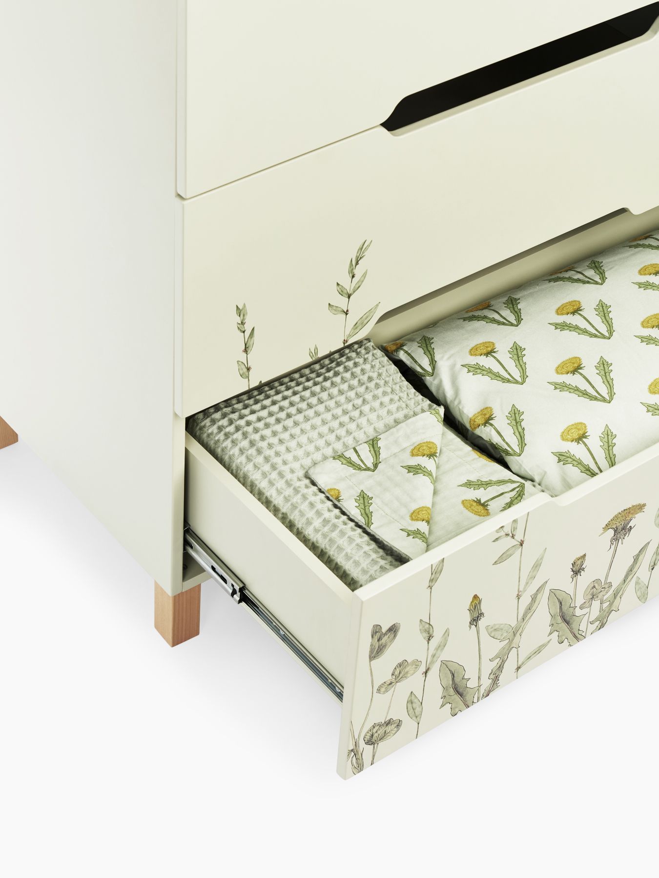 The Fioki chest of drawers will become an important part of your children’s room. Spacious drawers will provide storage for all the necessary things for the baby: care products, diapers, clothes and bedding. The drawers open easily without disturbing the child’s sleep, and the legs made of natural wood give the chest of drawers additional stability. The removable changing table makes caring for your baby even easier and more convenient, and its sides provide additional safety.