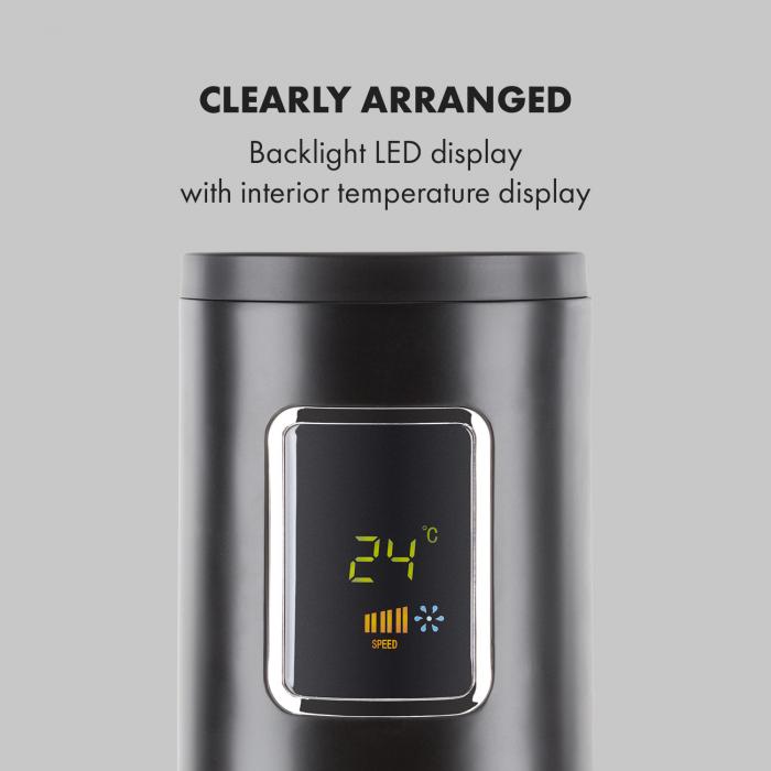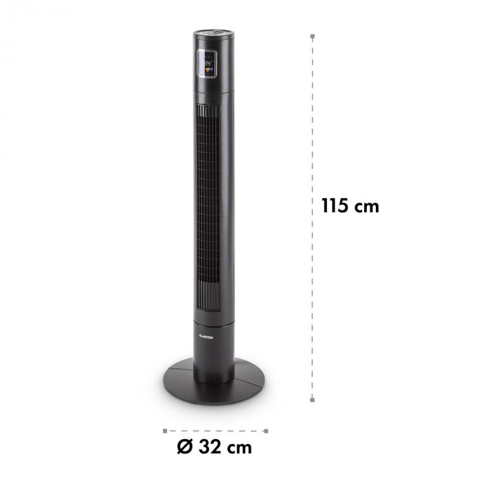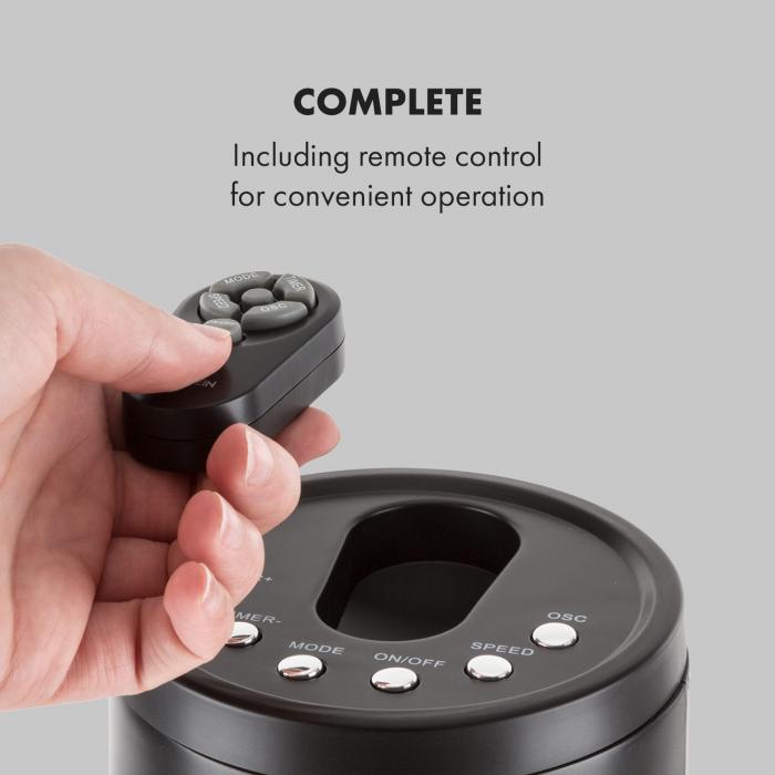 An elegant tower fan with three rotation speeds, three operating modes and a delayed shutdown function. Optionally switchable 90° oscillation function for optimal air circulation in the room. Compact tower design with control panel and remote control.