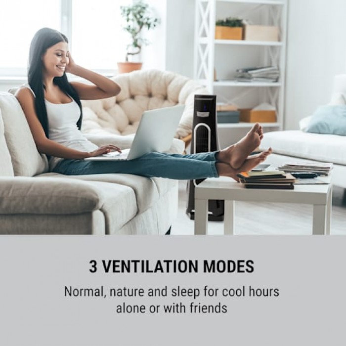 Enjoy refreshment with a fan in the stylish and elegant design of an American skyscraper. The OneConcept Blown Away lives up to its name and produces a maximum wind speed of 4.5m/s at 100W of power. There are 3 speeds and 3 ventilation modes (normal, night and natural). The airflow can also be manually adjusted horizontally. Wide base provides stability. Another practical feature is the timer function, which can be set in 1 hour increments up to 8 hours and provides automatic shut-off.