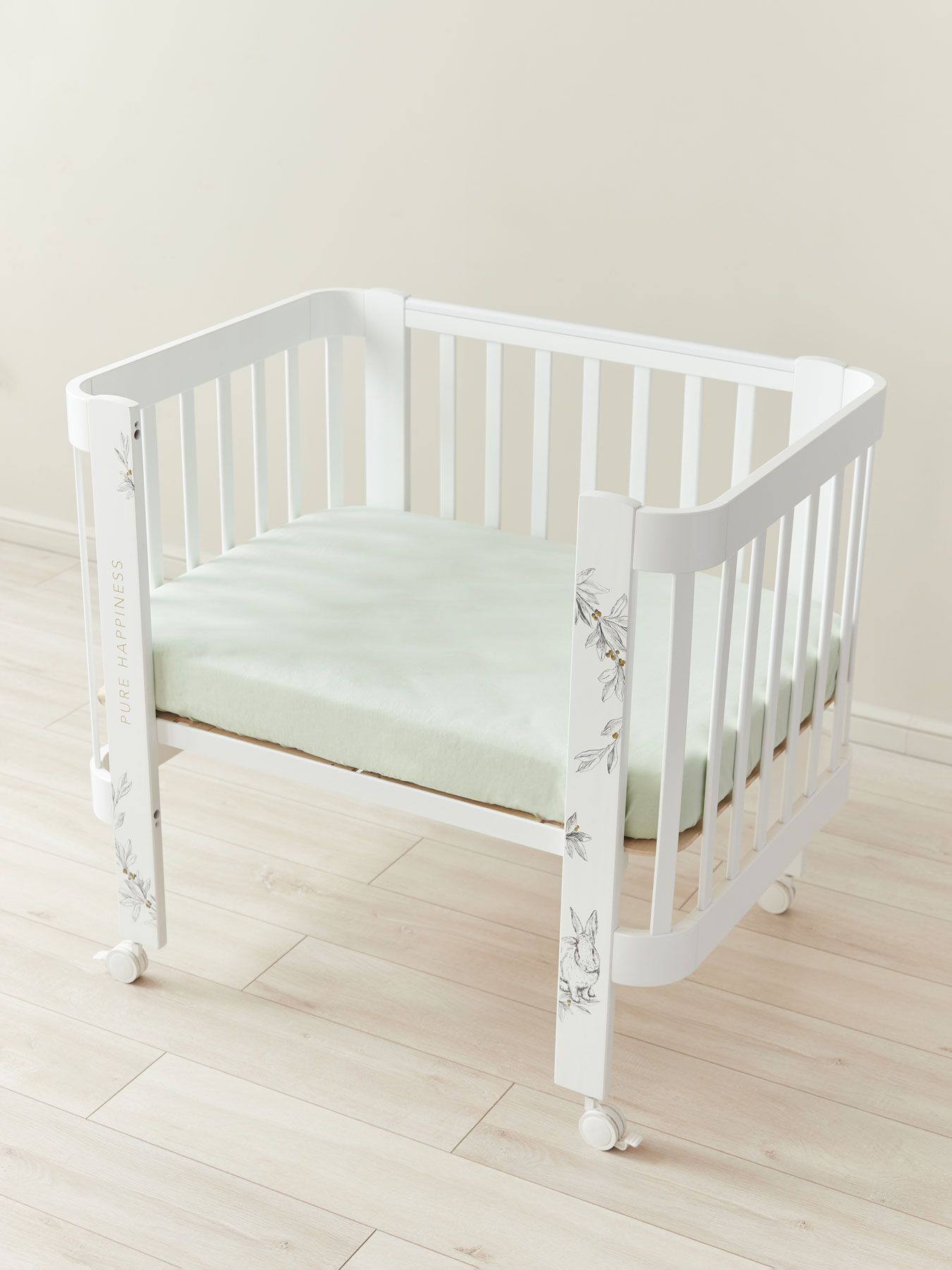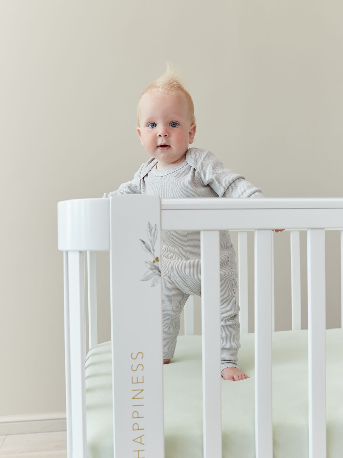 A knitted sheet with an elastic band is securely fixed to the mattress and allows you to create a perfectly flat surface, providing your baby with a pleasant, comfortable sleep. The sheet will not wrinkle or move, even if the child spins in his sleep. Made from 100% cotton. The soft hypoallergenic fabric breathes, wicks away moisture well and is gentle on your baby’s skin. Natural material and thoughtful design improve the quality of your child’s sleep and provide unsurpassed comfort. The sheet was created together with Alena Akhmadullina and is ideal for the MOMMY LOVE crib.