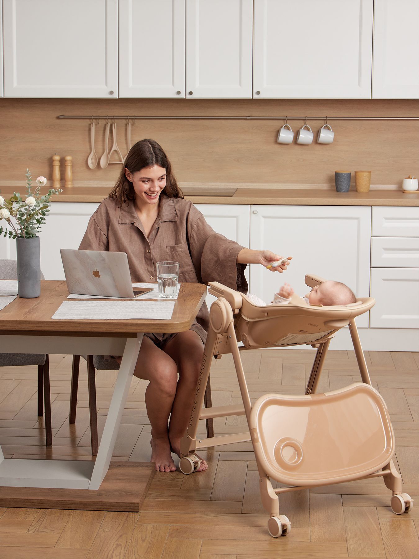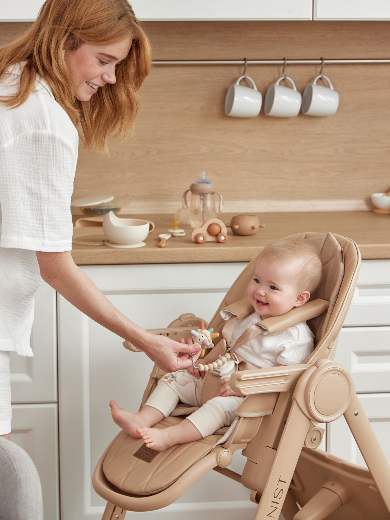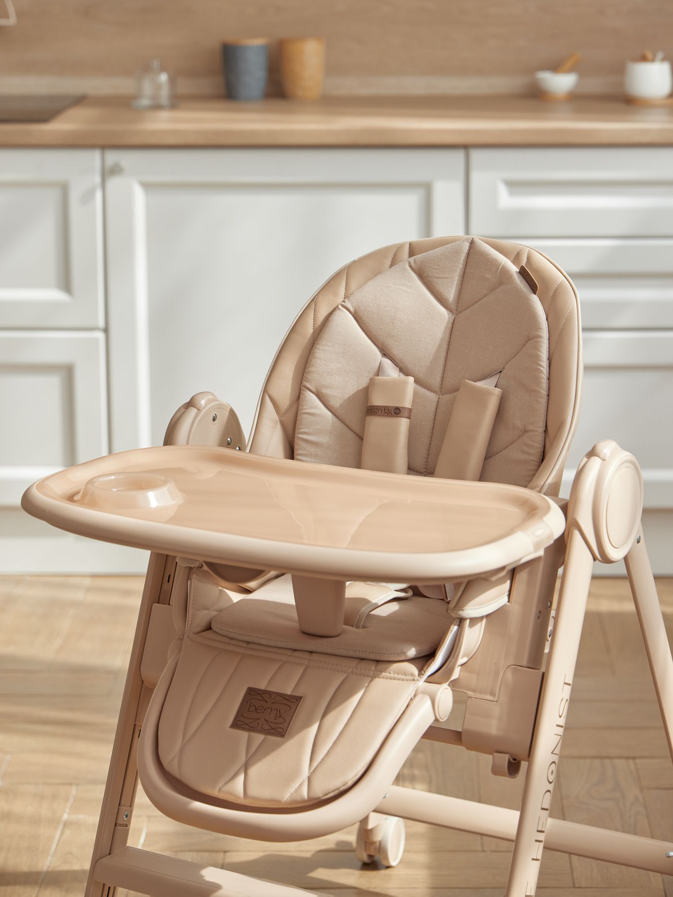 BERNY LUX is a continuation of the line of ideal high chairs from the BERNY series. Practical, comfortable, stylish and educational – it is adjustable for the height of the seat, footrest, steps and backrest tilt. Children will be comfortable in the “chaise lounge” position, and older children will climb into the chair themselves using a step. The solid metal frame without solders or sharp corners is safe and can withstand increased loads of up to 25 kg. The rear and front (for the updated version of BERNY LUX) swivel wheels provide mobility and are equipped with a brake mechanism, which adds stability to the chair. The eco-leather seat and soft cotton lining provide comfort for the baby. You can put toys or hygiene products in the pocket on the back of the back. BERNY LUX will fit into any interior – the laconic design of the frame and covers is made taking into account modern trends.