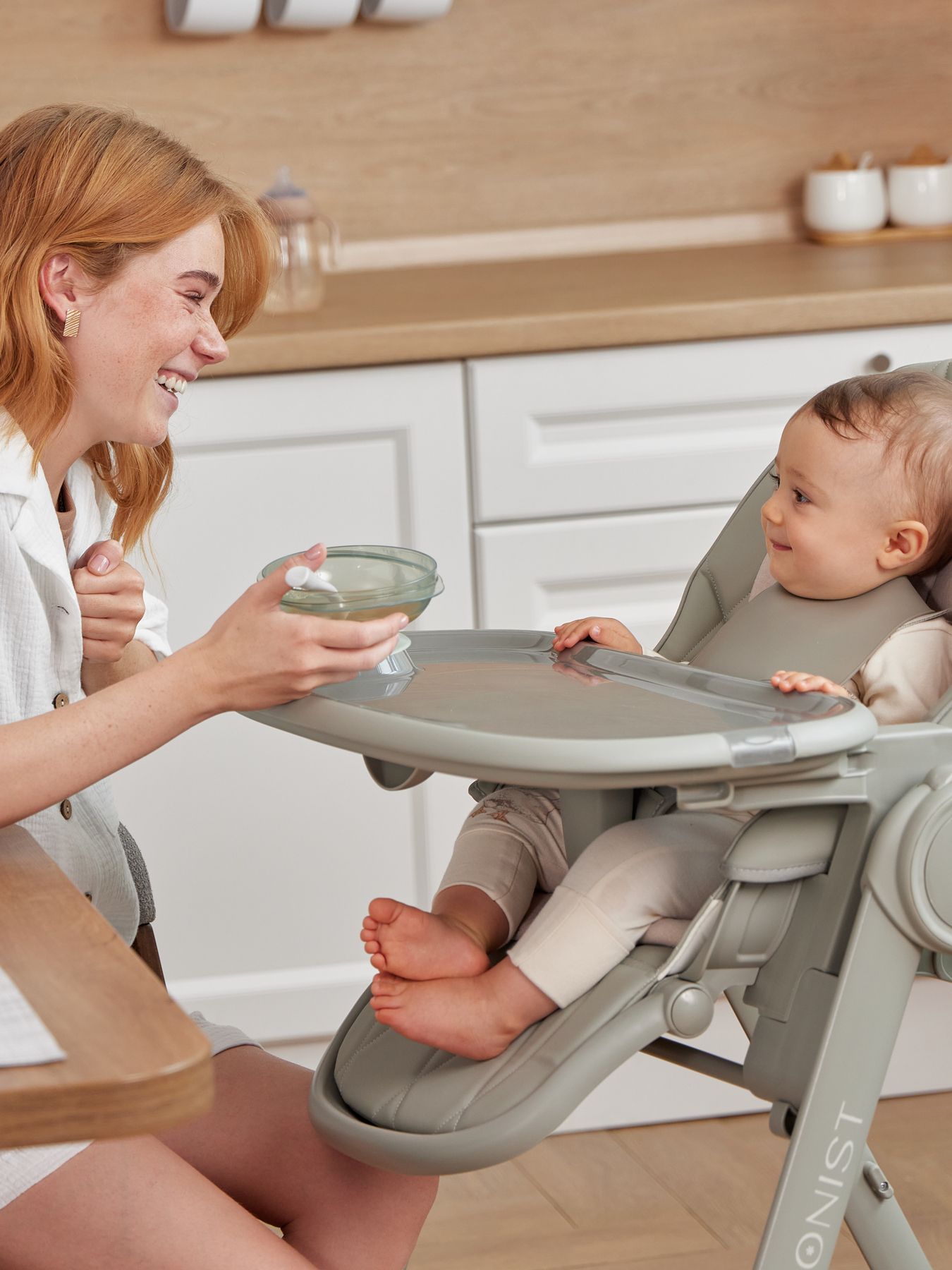 BERNY LUX is a continuation of the line of ideal high chairs from the BERNY series. Practical, comfortable, stylish and educational – it is adjustable for the height of the seat, footrest, steps and backrest tilt. Children will be comfortable in the “chaise lounge” position, and older children will climb into the chair themselves using a step. The solid metal frame without solders or sharp corners is safe and can withstand increased loads of up to 25 kg. The rear and front (for the updated version of BERNY LUX) swivel wheels provide mobility and are equipped with a brake mechanism, which adds stability to the chair. The eco-leather seat and soft cotton lining provide comfort for the baby. You can put toys or hygiene products in the pocket on the back of the back. BERNY LUX will fit into any interior – the laconic design of the frame and covers is made taking into account modern trends.