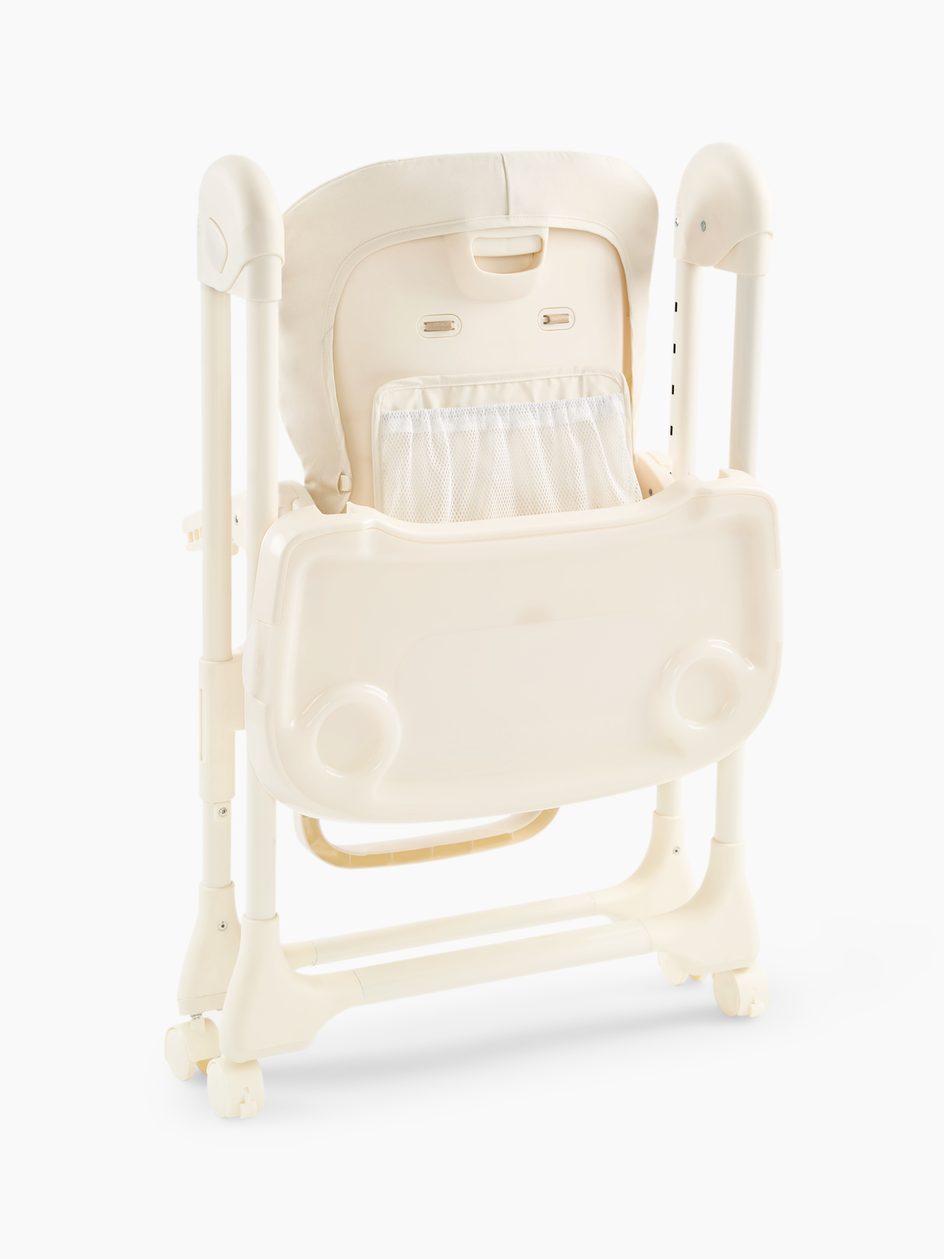 The WILLIAM PRO high chair has a stylish appearance and super features. Suitable for little ones – the backrest folds out from a vertical position to a horizontal one. In total, the backrest and footrest have 3 angles of inclination. The removable tabletop has 3 length positions – food will fall on the overhead tray and not on the child’s clothes. The tabletop is equipped with a folding tablet stand – the chair is convenient to use not only for eating, but also for studying and entertaining. The removable tray is dishwasher safe. WILLIAM PRO is as mobile as possible – all 4 wheels are swivel and equipped with brakes. Easy to fold and compact for storage.