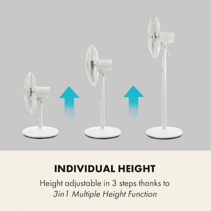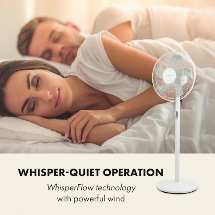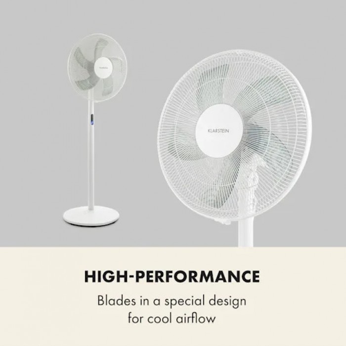 The Klarstein Flex Stream Fan, imported from Germany, is a reliable assistant on hot days. Flex Stream Fan is easy to use as it has 8 speed levels, a tilting fan head and a timer function. Low noise levels are achieved thanks to a specially designed 5-blade rotor, which is particularly effective in providing high air flow and cooling. All functions can also be conveniently selected using the remote control. The classic design in a white body looks fresh, stylish and will decorate any room.