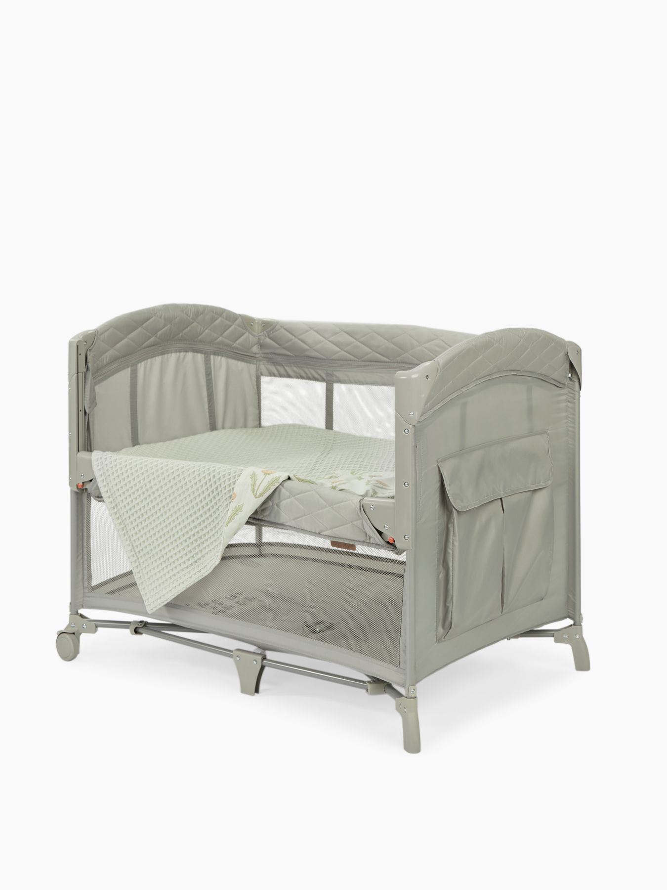 The playpen is decorated with fabulous ornaments and makes games in it especially exciting. Low weight, compact size when unfolded and minimal when folded make the playpen ideal for travel, as well as apartments with a small area. The playpen easily turns into a comfortable crib. The wall of the playpen lowers halfway and allows you to install it next to the parents’ bed for a restful sleep for the baby and mother. Wheels help you move the cot around the house. For safety, there are no sharp corners, and the upper part is soft, made from easy-care and water-resistant Oxford fabric. With the playpen, the baby will feel at home and safe everywhere, and the unique design will be an excellent addition to any interior.