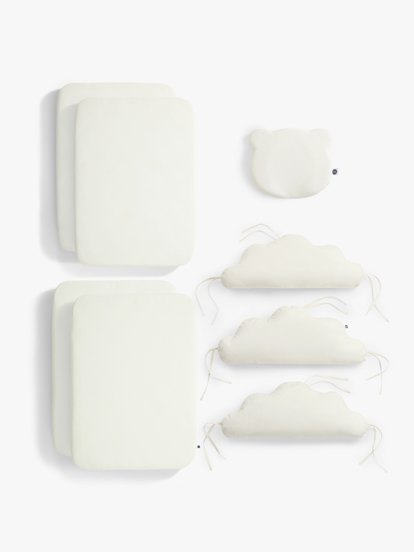 This newborn crib set will give your baby comfort and softness. The set includes everything you need for a comfortable and restful sleep: 3 crib bumpers, 2 fitted sheets 100×70 cm, a pillow 26×22 cm and 2 mattress covers 100×70 cm. Thanks to the universal colors, the set is suitable for boys and girls.