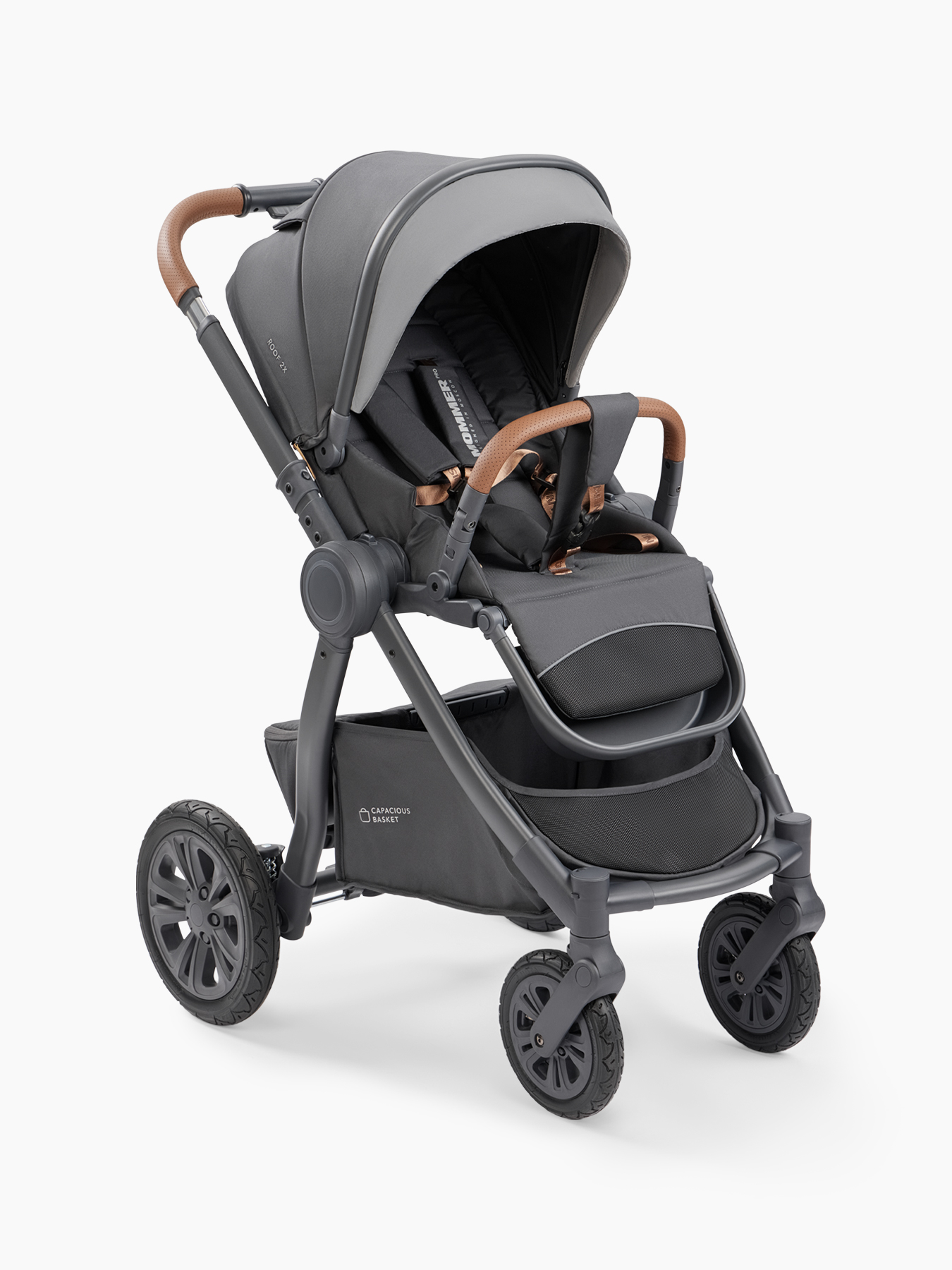The 3-piece set includes: • 2 in 1 stroller Mommer pro nova with inflatable wheels • Skyler pro car seat • Adapter for Mommer pro nova and Skyler pro Stroller 2 in 1 MOMMER PRO NOVA Article: MOMMER PRO NOVA: STROLLER 3 in 1 (beige nova, black nova, dark gray nova) Quantity in the set: 1 Color: beige, black, gray (depending on the chosen color of the set) Age: from 0 to 3 years Composition: metal, plastic, textile MOMMER PRO is a 2 in 1 stroller for children from birth, equipped with a spacious cradle and a comfortable walking block. The cradle block for newborns is equipped with a convenient carrying handle. A large hood will protect you from the sun, and a viewing window will help you keep an eye on your child. The walking block is equipped with a hood up to the bumper. A bumper with a leg divider and five-point harnesses with soft pads securely secure the baby in the stroller. The angle of the block, the position of the backrest and footrest can be adjusted. A seasonal stroller with large inflatable wheels. The walking block is installed facing the parents or in the direction of travel. Walking with MOMMER PRO is convenient for both mom and dad – the telescopic handle can be adjusted to the desired length. Shock absorption on the rear and front wheels will provide comfort even on off-road conditions. Reliable rear wheels with rubber tires and EVA foam filling do not need to be pumped up. A large basket will accommodate purchases and everything you need for walking. With MOMMER PRO, the baby’s comfort and safety are under control.