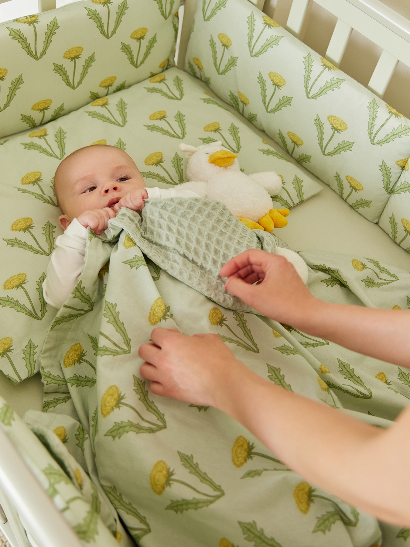 The set of 9 items includes: • Chest of drawers FIOKI V2 • Transformable crib MOMMY LOVE • Mattress for the cradle MOMMY LOVE 100×70 cm • Children’s mattress pad 100×70 cm • Set of bumpers for the crib, 3 pcs • Children’s pillow • Children’s blanket • Set of dividers for boxes, 2 pcs. SORTLINE “SORTLINE” • Bed linen set (duvet cover and pillowcase) • Fitted sheet 100×70 cm, 2 pcs Chest of drawers with changing table FIOKI V2 Article: 91037 Quantity in set: 1 pc Color: white Composition: MDF, natural wood Chest of drawers Fioki V2 will become an important part of your children’s room. Despite its compact size, it provides spacious storage of all the necessary things for the baby: care products, diapers, clothes and bedding. The drawers open easily and silently without disturbing the child’s sleep, and the legs made of natural wood give the chest of drawers additional stability. The removable changing table makes caring for your baby even easier and more convenient, and its sides provide additional safety.