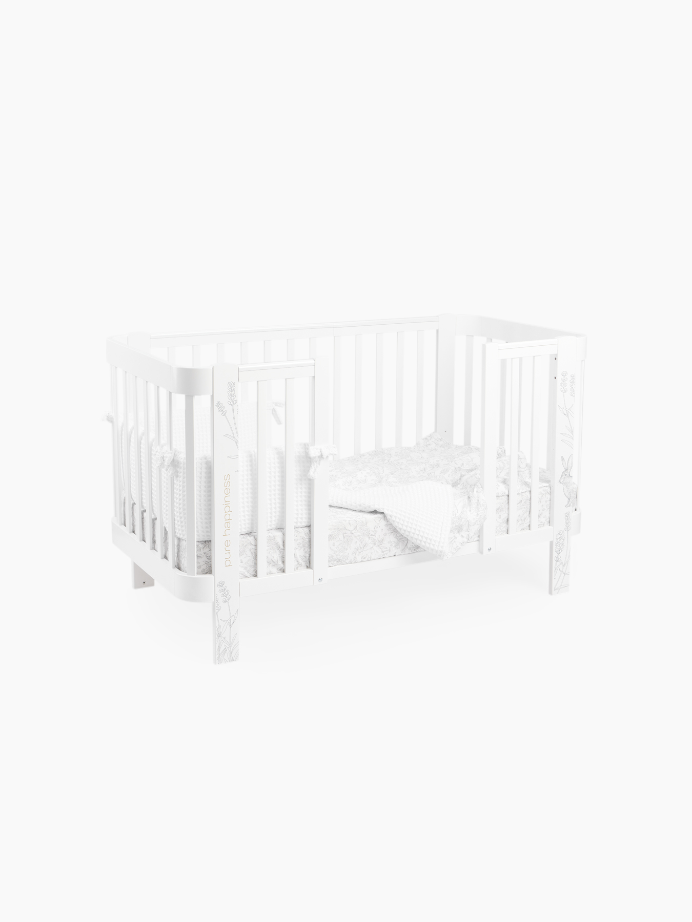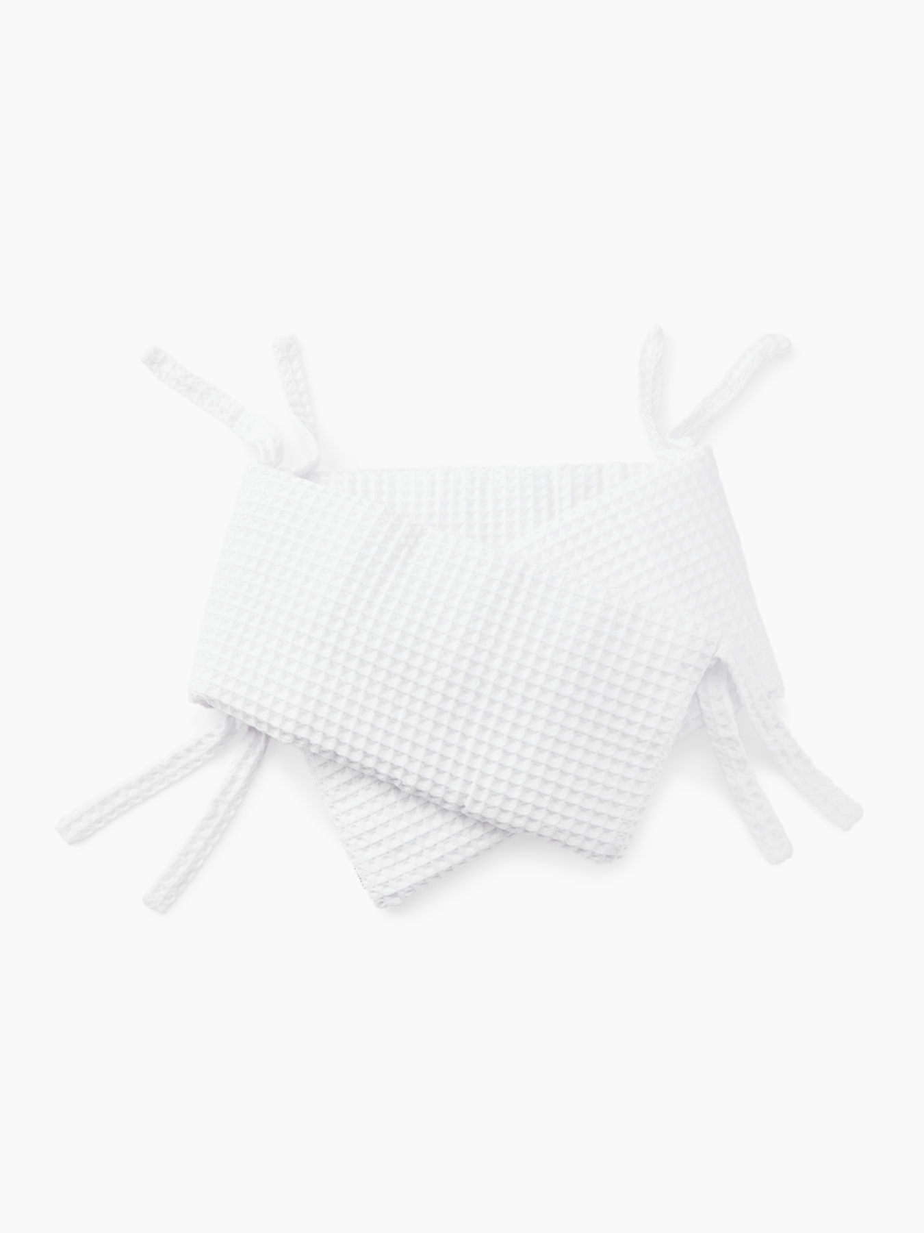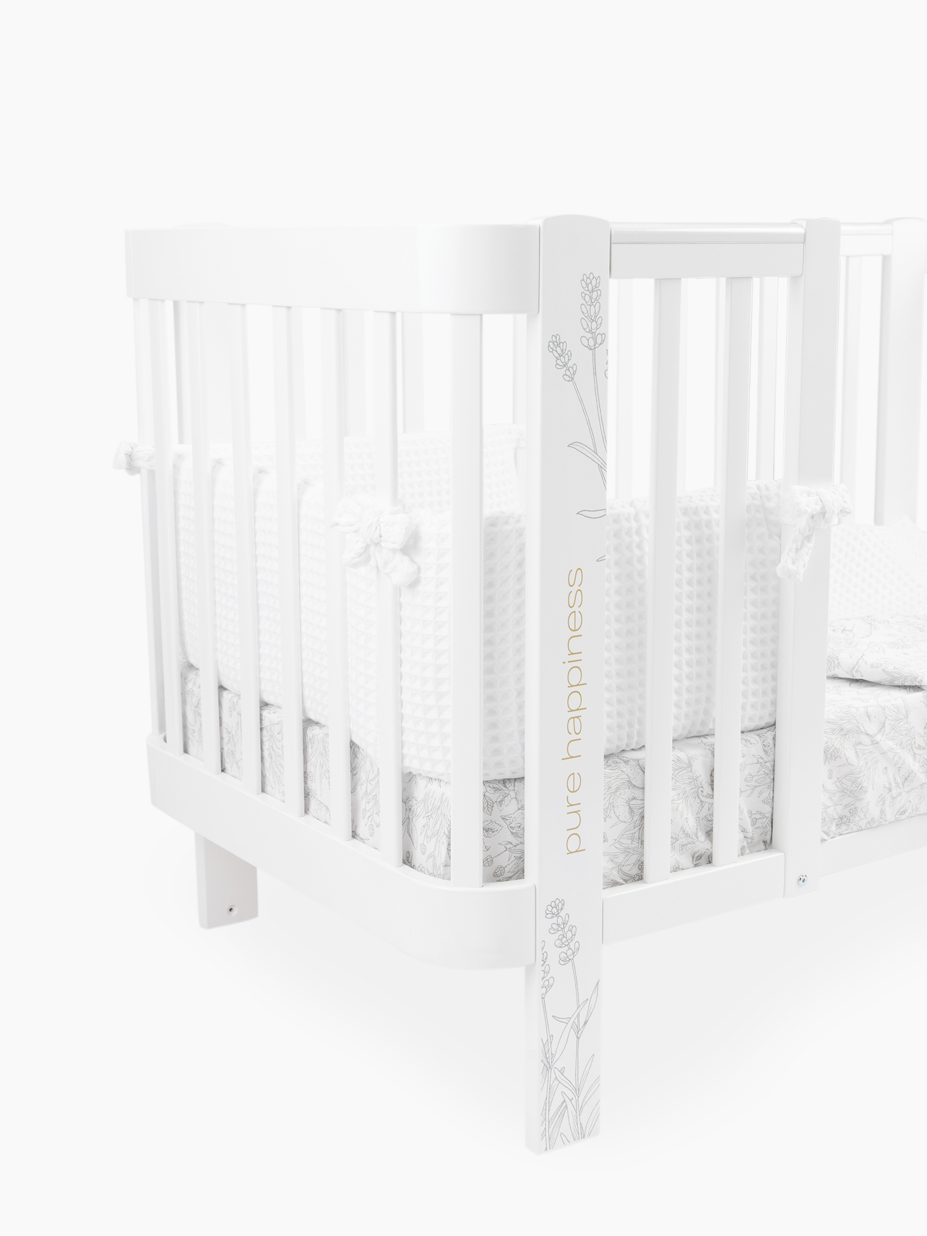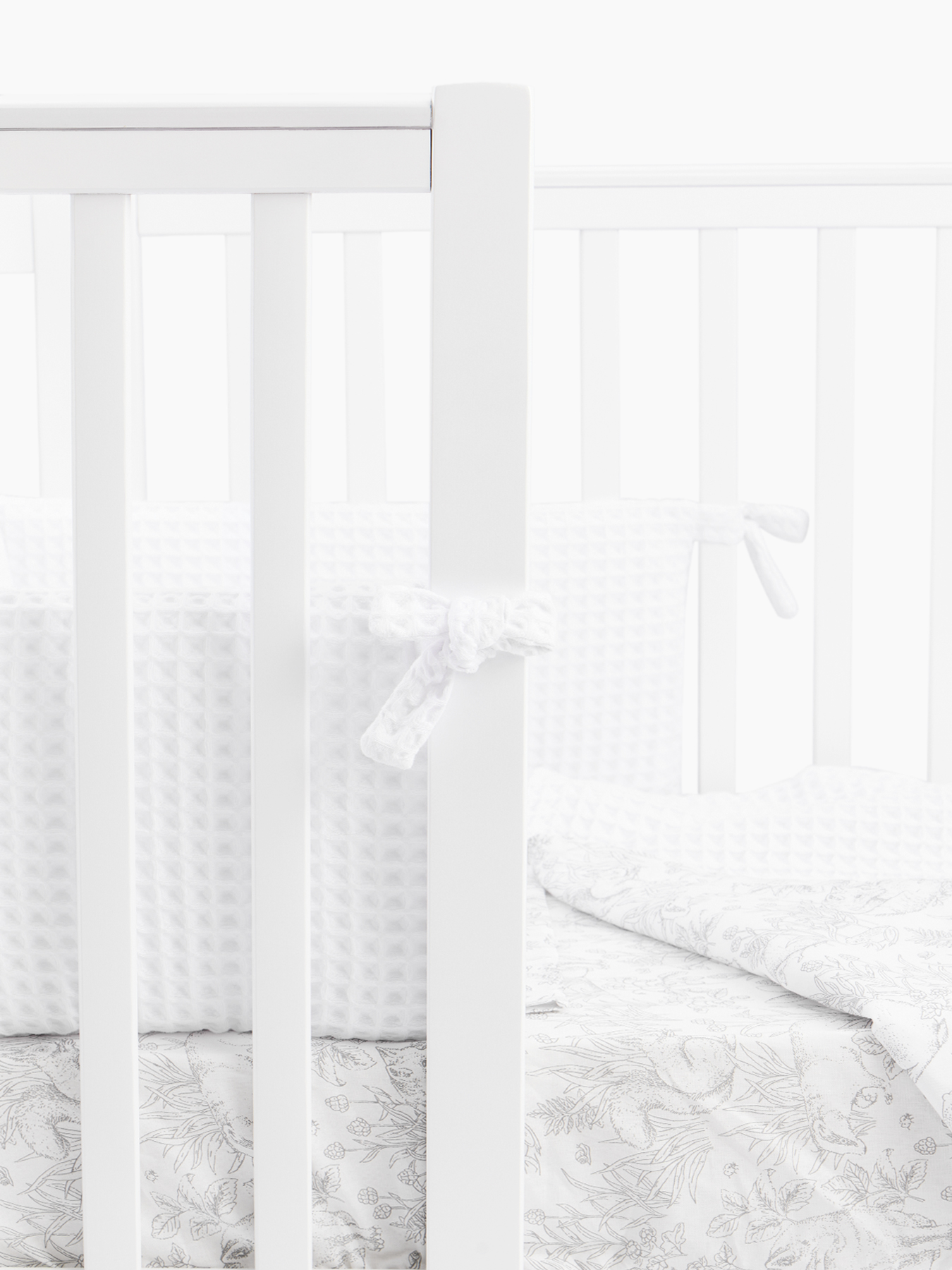 The side of the crib is necessary for the safety and comfort of the baby. We have created a soft and light side with a safe, dense filling to protect the baby from injuries, bruises and getting stuck in partitions. Made from 100% cotton. The natural material is hygroscopic, does not heat up in hot weather and retains heat in cold weather. Filling – 100% polyester – flexible, elastic, breathable and washable. The side is securely attached to the walls using ties.