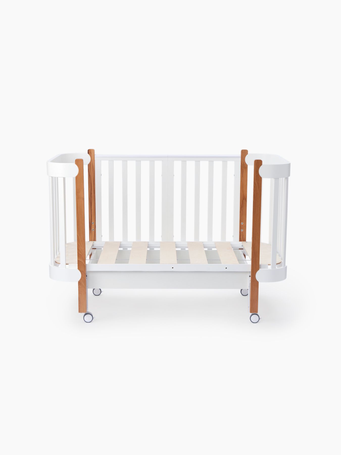 Thanks to simple lines, natural materials and innovative solutions, the MOMMY LUX hb™ baby crib will be a cozy place for your baby from birth. The crib comes complete with a cradle pen and an extension kit. The cradle gives you the opportunity to feel and see every breath of the baby – just remove the partition and move the cradle close to the parents’ bed. To prevent the bassinet from moving away from the adult bed, two fixing straps are included in the kit. It will be convenient for you to feed the baby, check your well-being, adjust the blanket or shift the baby after feeding, and the baby will feel safe next to his mother. A unique feature of the MOMMY LUX hb™ crib is the ability to tilt the bottom, which will prevent accidents associated with the baby’s natural belching during sleep. Ease of use is also ensured by the slatted bottom with the ability to be installed in 4 height positions. The pendulum for the cradle provides the baby with the sweetest sleep, simulating natural rocking as in the arms of a mother. The pendulum can be used in the “cradle” position and in the “crib” position – an extension is also provided for the pendulum. Thanks to this, the baby falls asleep faster and sleeps more soundly compared to a regular crib. The kit includes clamps that prevent spontaneous rocking when the baby turns over in his sleep or wakes up after a sound sleep. The expansion kit allows you to expand the bassinet to a full-size crib. The sides are equipped with polypropylene pads to protect the baby and the crib during teething. For older children, one of the sides of the crib can be replaced with a limiter in the form of a cute cloud, which will decorate the interior of the bedroom. MOMMY LUX hb™ was created with the participation of experienced mothers using exclusively high-quality materials – durable and easy to care for. We care about the comfort of children and parents.