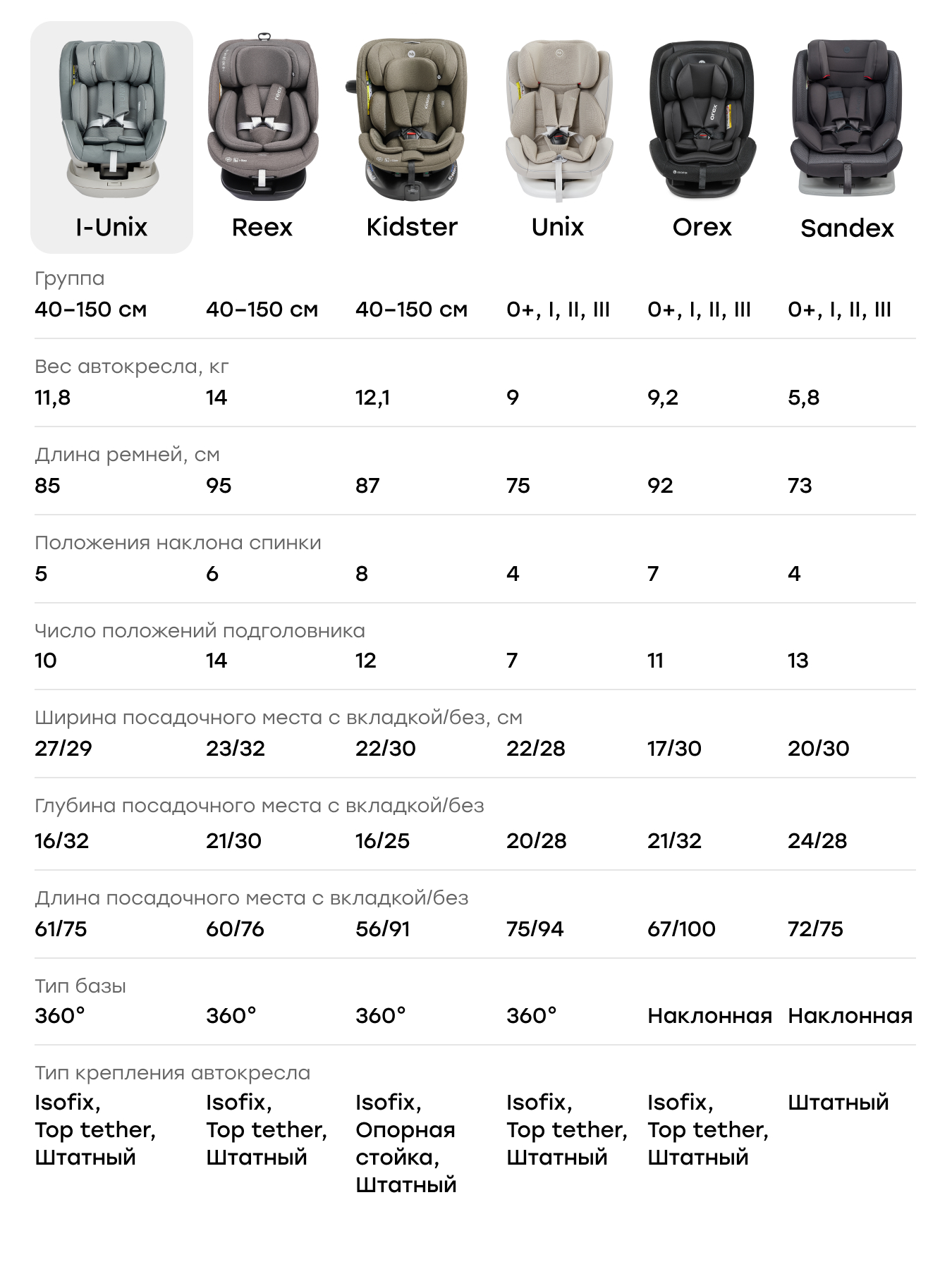 UNIX is a universal car seat for children from birth to 12 years of age, which can be installed using both the car’s three-point seat belts and the ISOFIX system. Various mounting options and a swivel base offer a wide range of options for the most convenient and safe positioning in any vehicle.