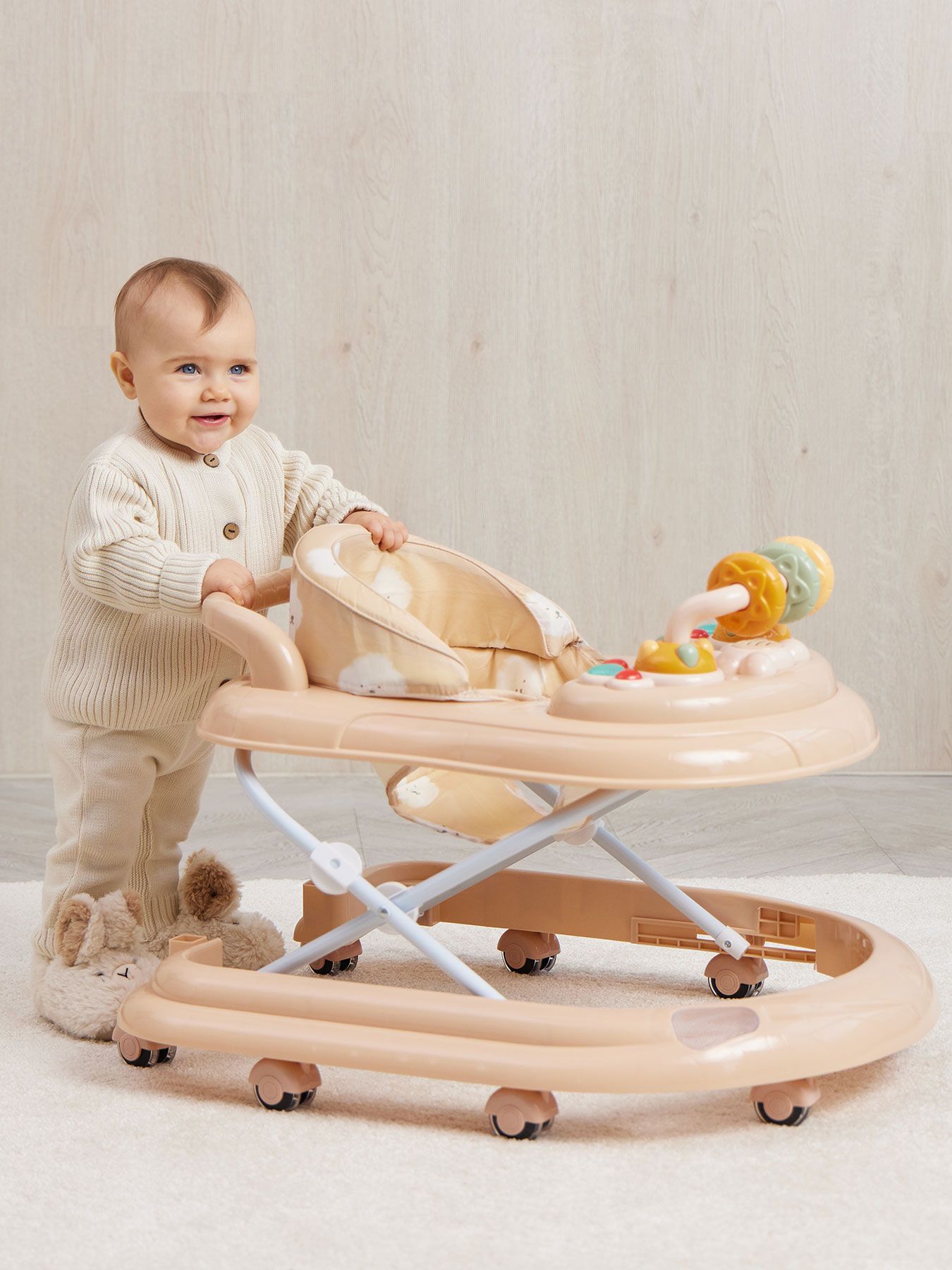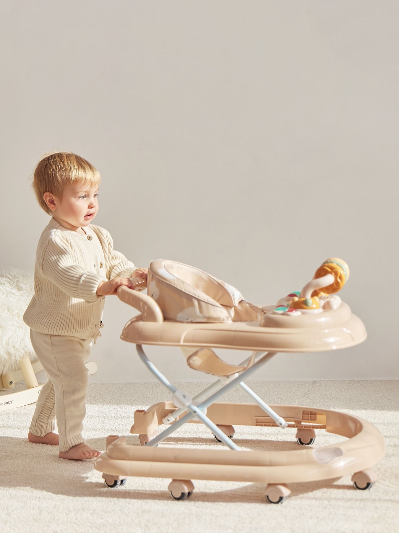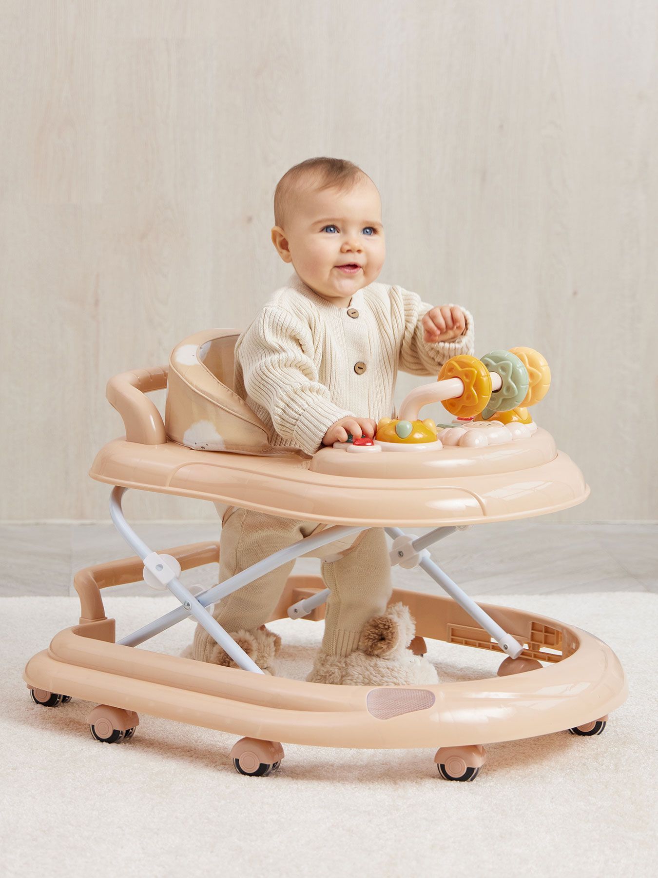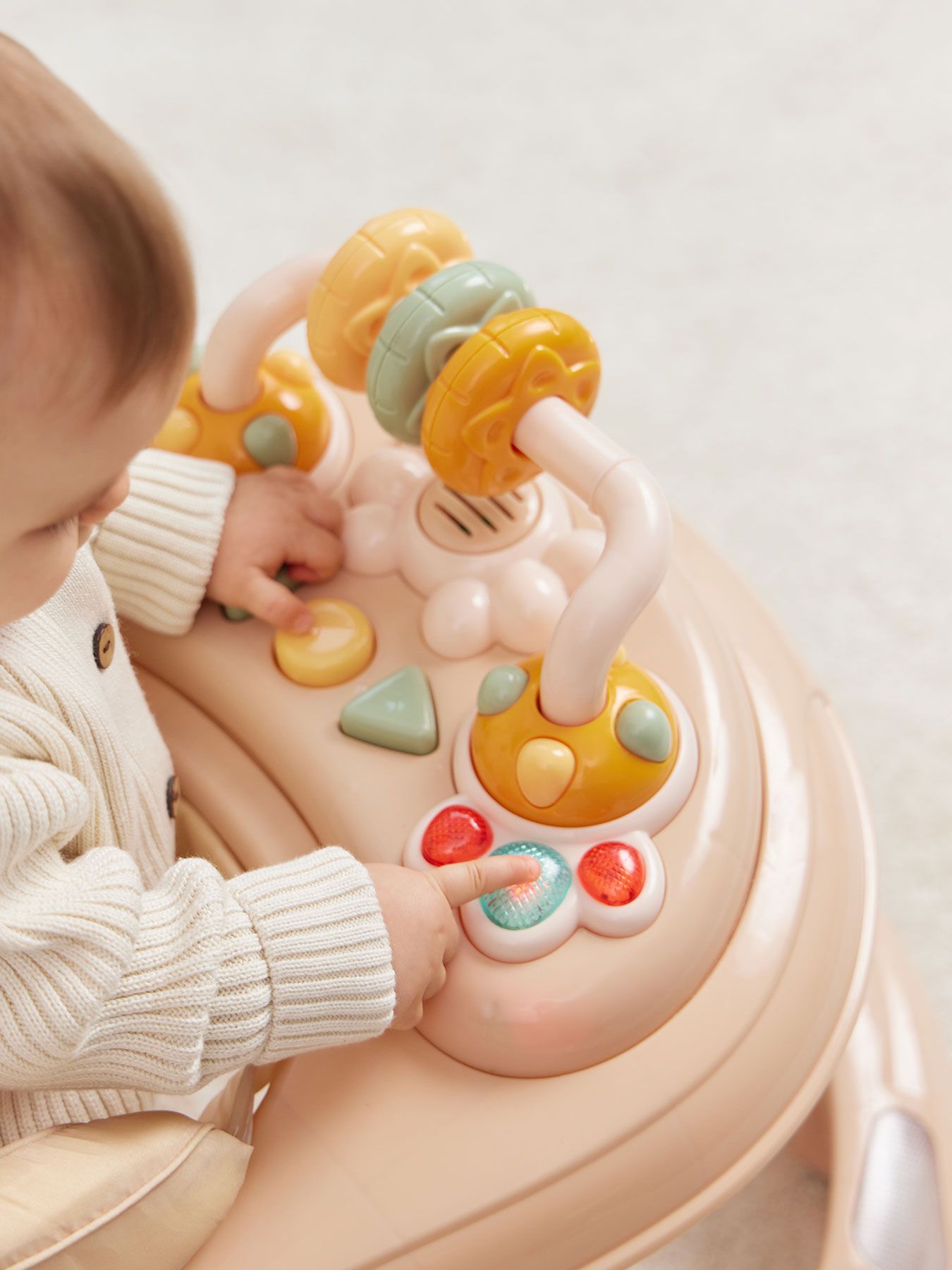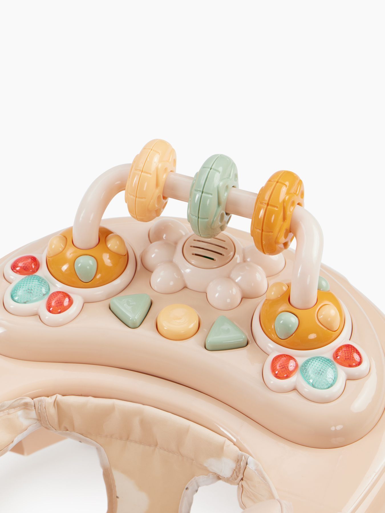 Classic walkers SMILEY V2 develop coordination of movements and will help the child learn to maintain balance. The soft colors of the walker will attract the baby’s attention. A play panel with sound effects and toys will help develop your baby’s vision, hearing, grasping reflex and fine motor skills. The soft, comfortable seat is easily adjustable in 3 positions depending on height. SMILEY V2 walkers are equipped with special silicone wheels that will not scratch the floor covering. The game panel runs on 2 AA batteries.